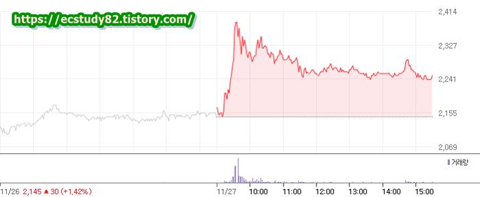 11월 27일 외국인은 283804주를 매도하였고, 기관은 20371주를 매수하였습니다.