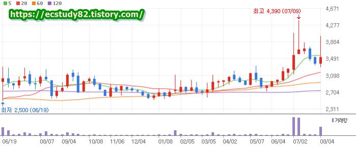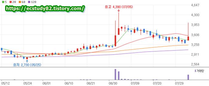 | 08/02 | 3400원 | 상향 25원 | 5660 | 2547 |